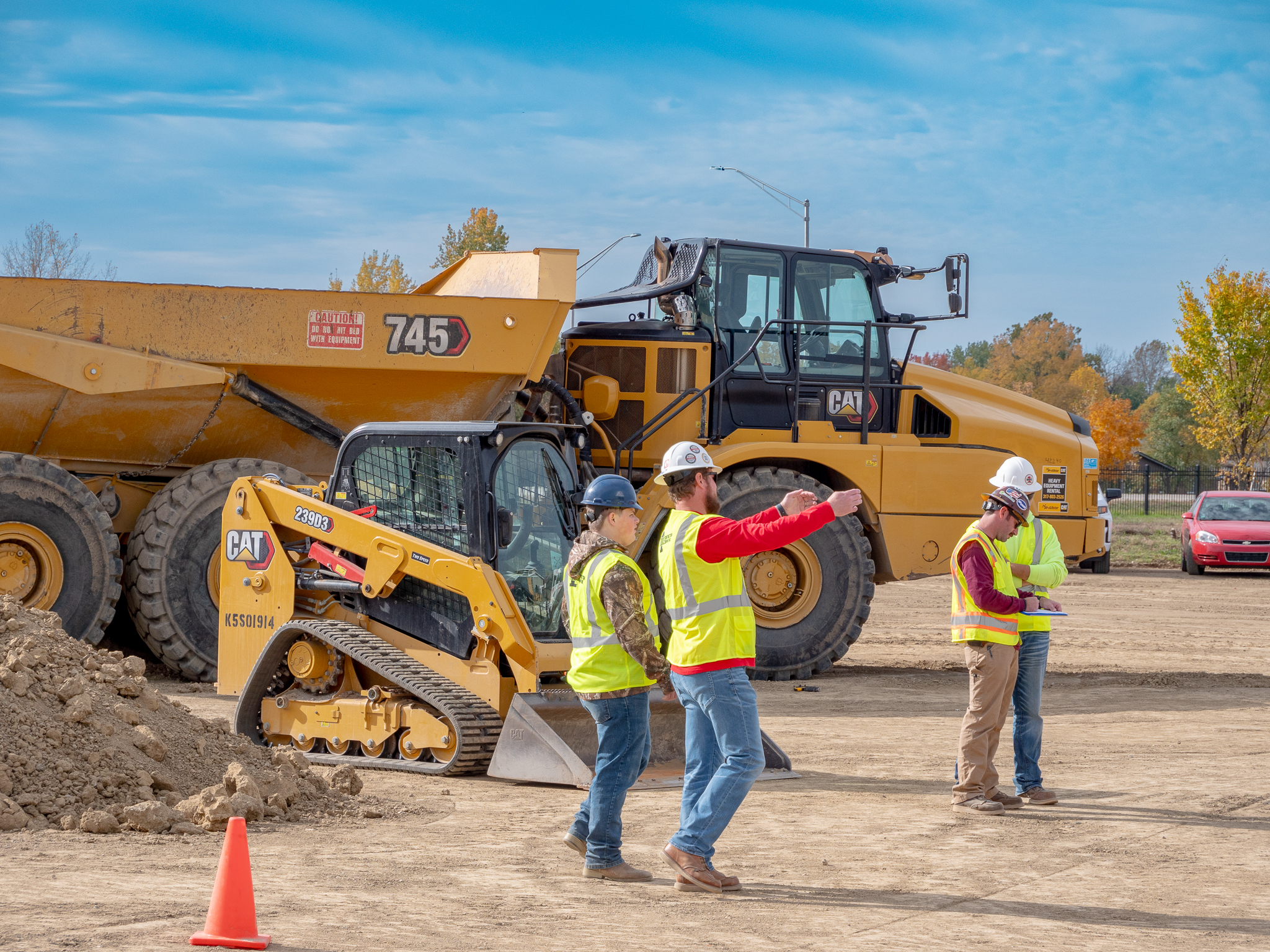 The competition featured students from Civil Construction Pathway classes from 2 high schools (Hamilton Heights High School and Garrett High School), making up four teams competing against each other in several skill and equipment tests.